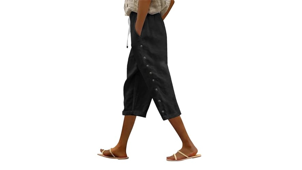 1. PIFAME Amazon haul Items Linen Capri Pants for Women Petite Linen Pants Womens Capris for Summer Clearance Ladies Linen Spring Summer Pants for Women 2025 Striped Linen Pants,Black