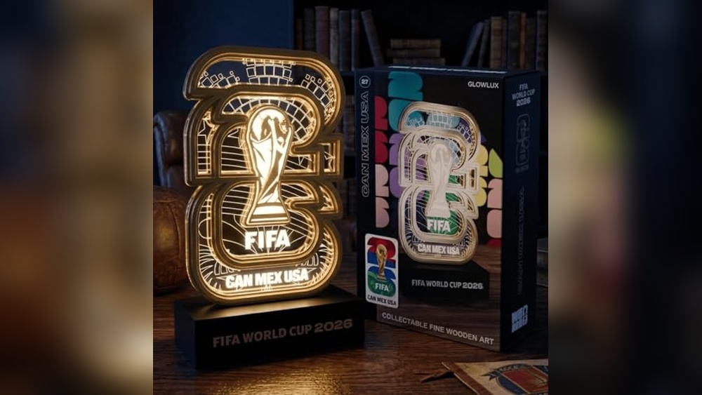 This officially licensed LAYERLUX collectible display celebrates the 2026 FIFA World Cup hosted by the USA, Canada, and Mexico. Unlike traditional trophies, it offers a layered wood and acrylic construction with an elegant white LED glow, creating a captivating, dimensional display that appeals to soccer fans looking for meaningful memorabilia.