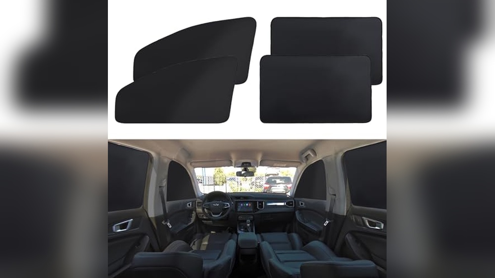 The XCBYT Magnetic SUV Window Shades come as a set of four blackout covers designed specifically to shield side windows from sunlight and prying eyes. They are particularly useful for those wanting privacy during car camping or travel, using strong magnets for quick and tool-free installation. Their 99% UV blocking fabric helps reduce heat and sun exposure, making the interior cooler and more comfortable.