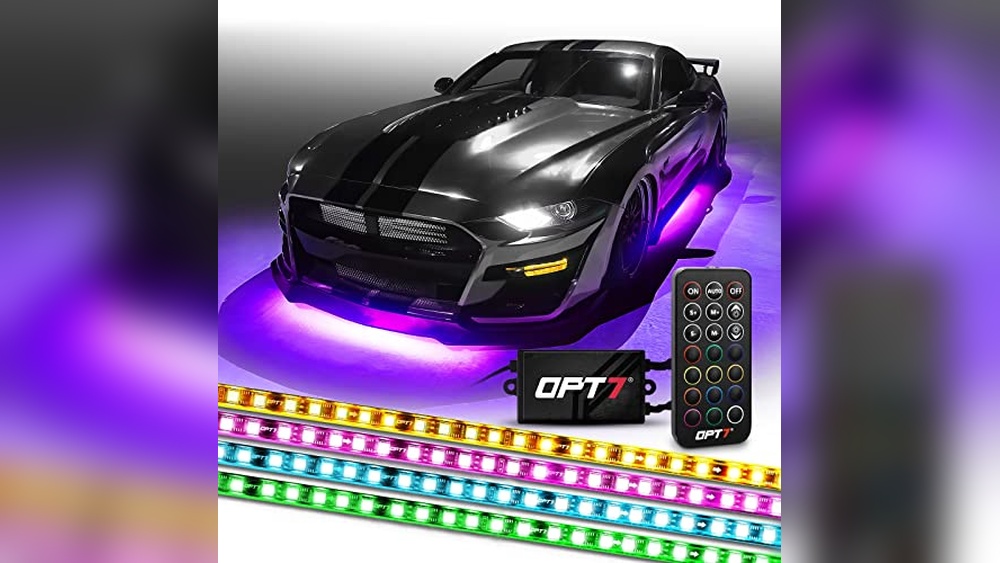 The OPT7 Aura Car Underglow Kit is designed for car enthusiasts looking for a durable Car Underbody Led Glow Strip Kit with customizable lighting options.