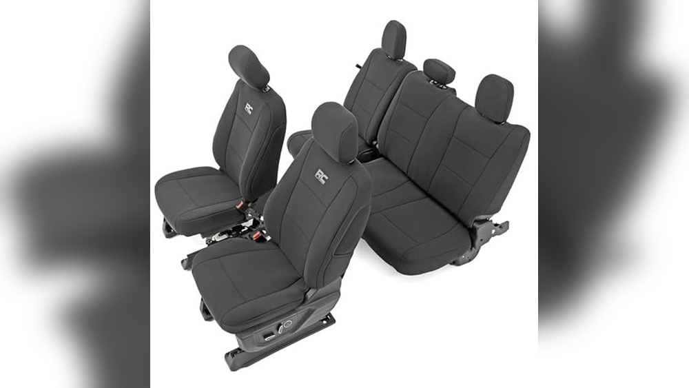 Rough Country seat covers fit my Ford F-150 perfectly. The neoprene material feels strong and soft at the same time. Installation was quick and easy, no special tools needed. These covers protect the seats well from dirt and spills. The design looks clean and matches the truck’s style. I appreciate the snug fit on both front and rear seats. Comfort during long drives improved with these covers. Overall, a practical and good quality choice for truck owners.