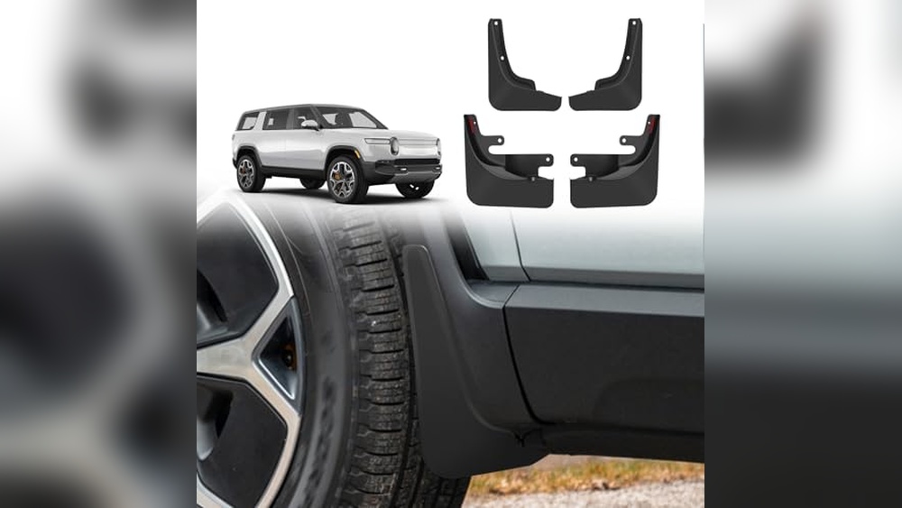 Mud flaps splash guards protect your Rivian R1S from mud, rocks, and dirt. They help keep the vehicle cleaner and prevent paint damage. This accessory is useful for off-road and daily driving.