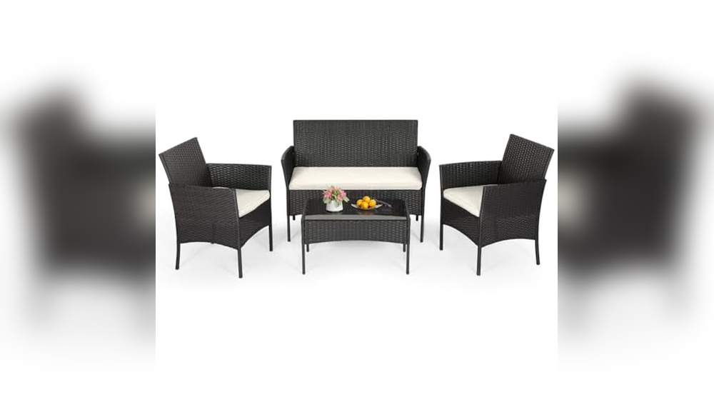 The FDW 4-piece patio furniture set fits perfectly on my porch. Its black wicker looks stylish and modern. Chairs feel strong but comfortable. The coffee table is a great size for drinks and snacks. Weather-resistant material keeps it looking new after rain. Easy to clean and move around. Perfect for relaxing outside with family or friends. A smart choice for any garden or lawn space.