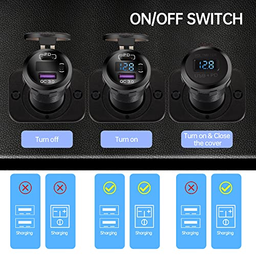 I installed this Dual USB Quick Charge 3.0 Port & PD unit in under ten minutes. The unit blends a PD USB-C socket with a QC3.0 USB-A port and a small voltmeter. In daily use I charged my phone and tablet together while watching the voltmeter for stable readings. The PD port pushes fast charging to modern phones and the voltmeter shows live battery voltage so I can avoid deep discharge issues. Materials feel solid and the power switch adds convenience for turning the outlet off to prevent phantom drain.